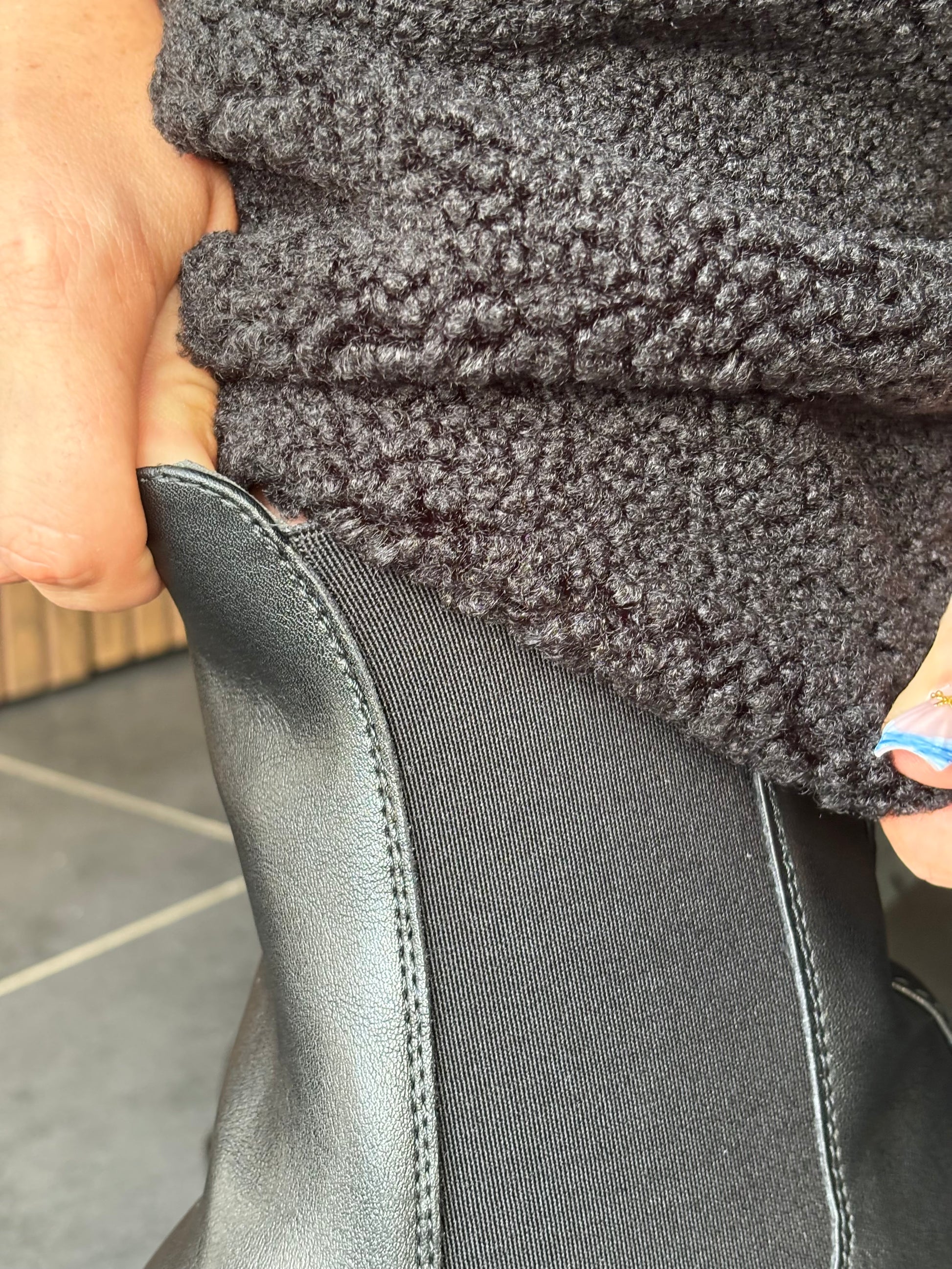 💖Tirette sur les côtés, ceinture réglable sur la manchette de mollet (elle s’enlève pour laisser la bottine apparente ou s’ajoute comme accessoire)