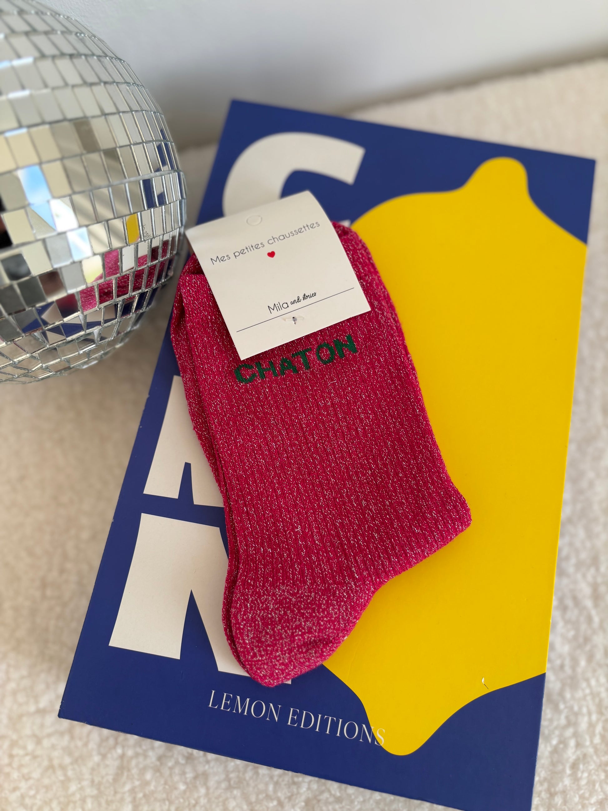 Chaussette à paillettes chaton fushia